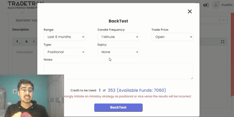 With the strategy set, it's time to backtest. Remember, since this is a positional strategy without a universal exit, select "None" for expiry in the backtest settings.