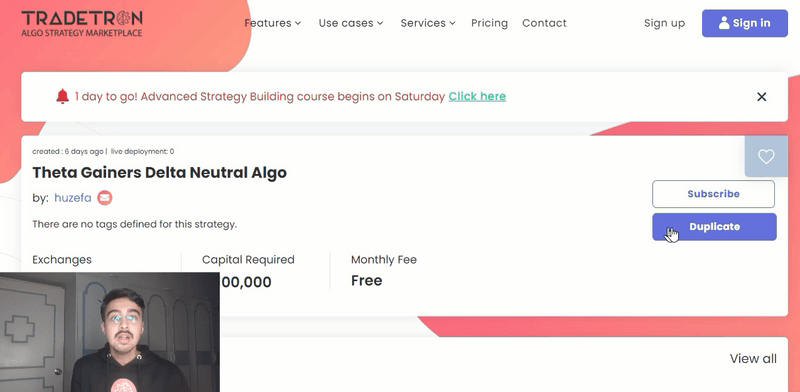 Now, you might be wondering how to replicate this strategy in your own trading account. Well, it's simpler than you think. Just click the duplicate link provided below the video, and voila! The strategy will be duplicated in your Tradetron account. From there, you can opt to paper trade it for free or backtest it to fine-tune your approach.