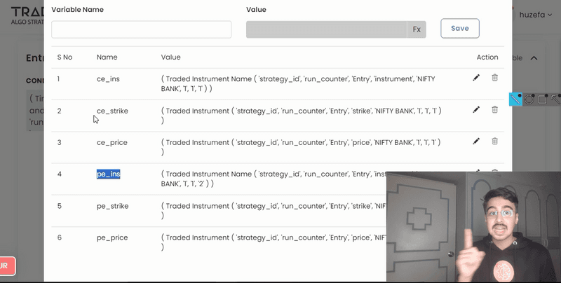 The backbone of this strategy lies in runtime variables. These variables capture crucial data like instrument names, strike prices, and entry prices. They form the building blocks of your adjustments, ensuring precision in your trades even as market conditions fluctuate.