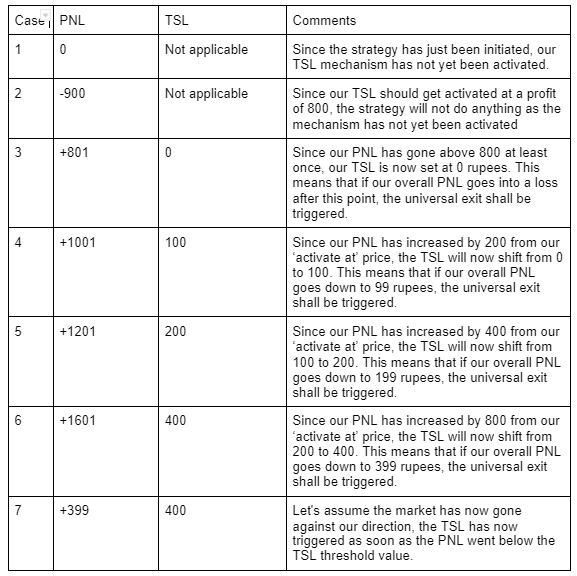 Thus the overall PNL calculation for TSL happens on the realised as well as the unrealised profit or loss of your strategy. The TSL will only reset if your run counter changes.