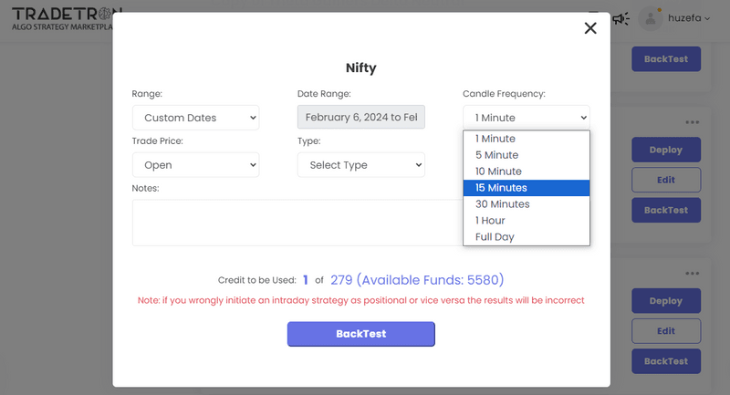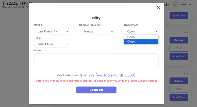 If your strategy revolves around price action or last traded price (LTP), select trade close prices for precision.